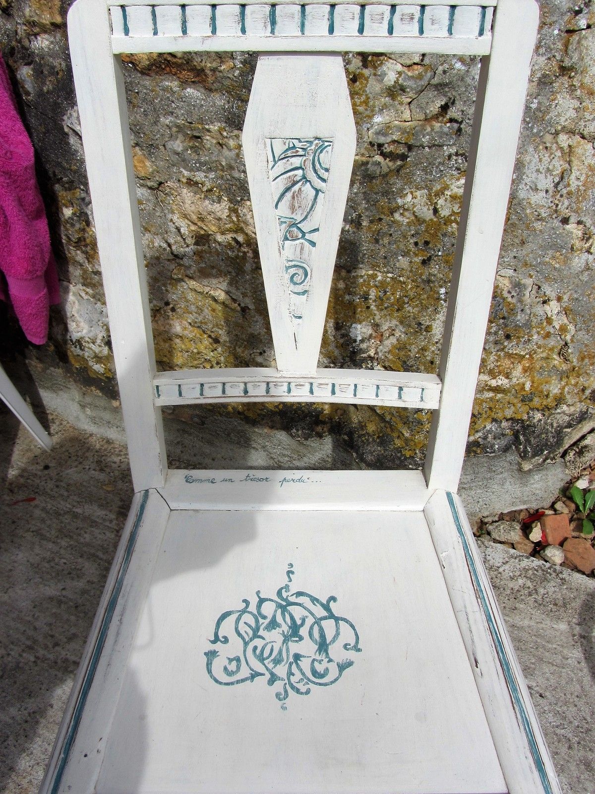 Toutes nos chaises ont eu le droit au même traitement. Elles avaient été customisées, il y a quelques années déjà.