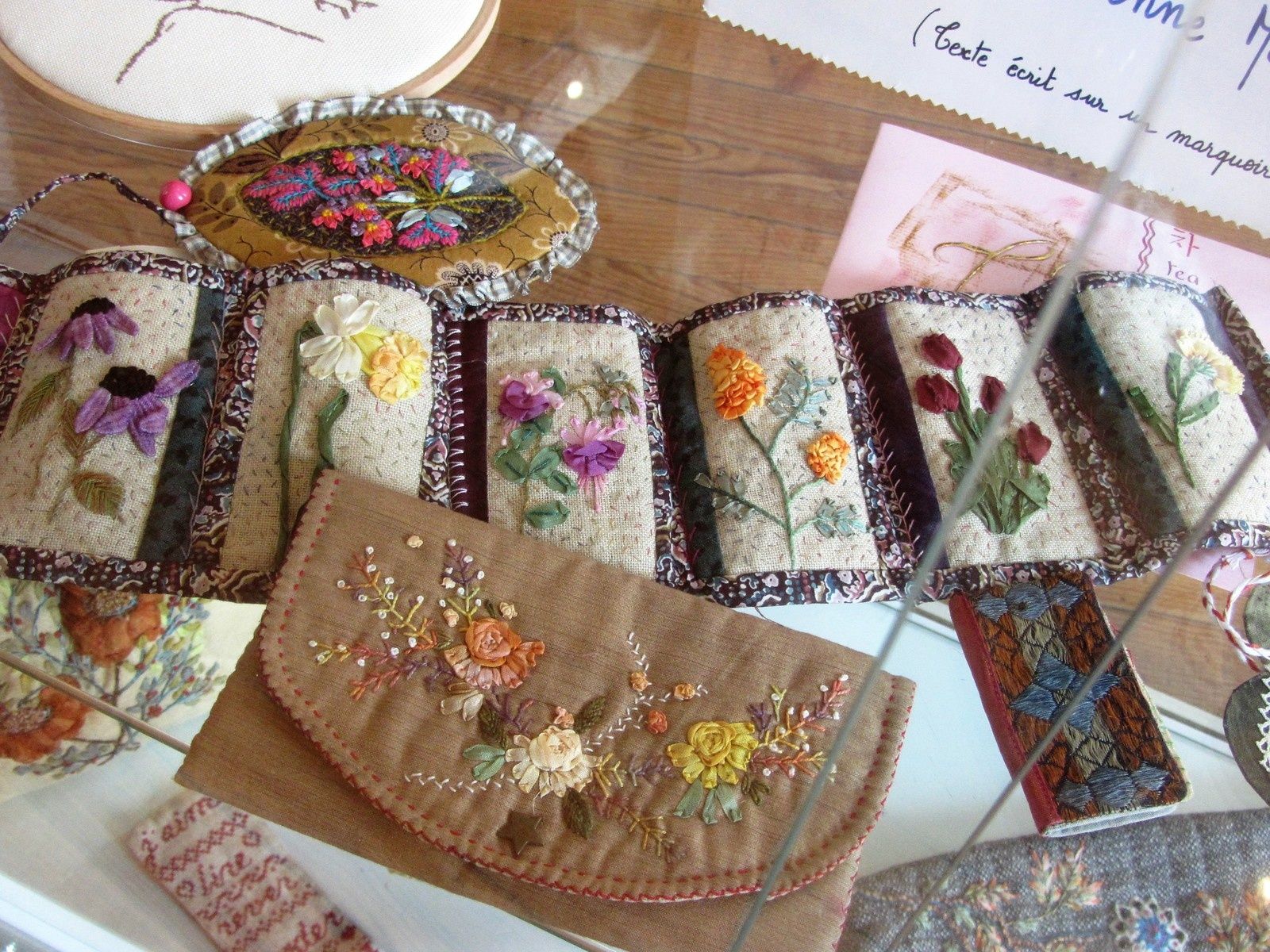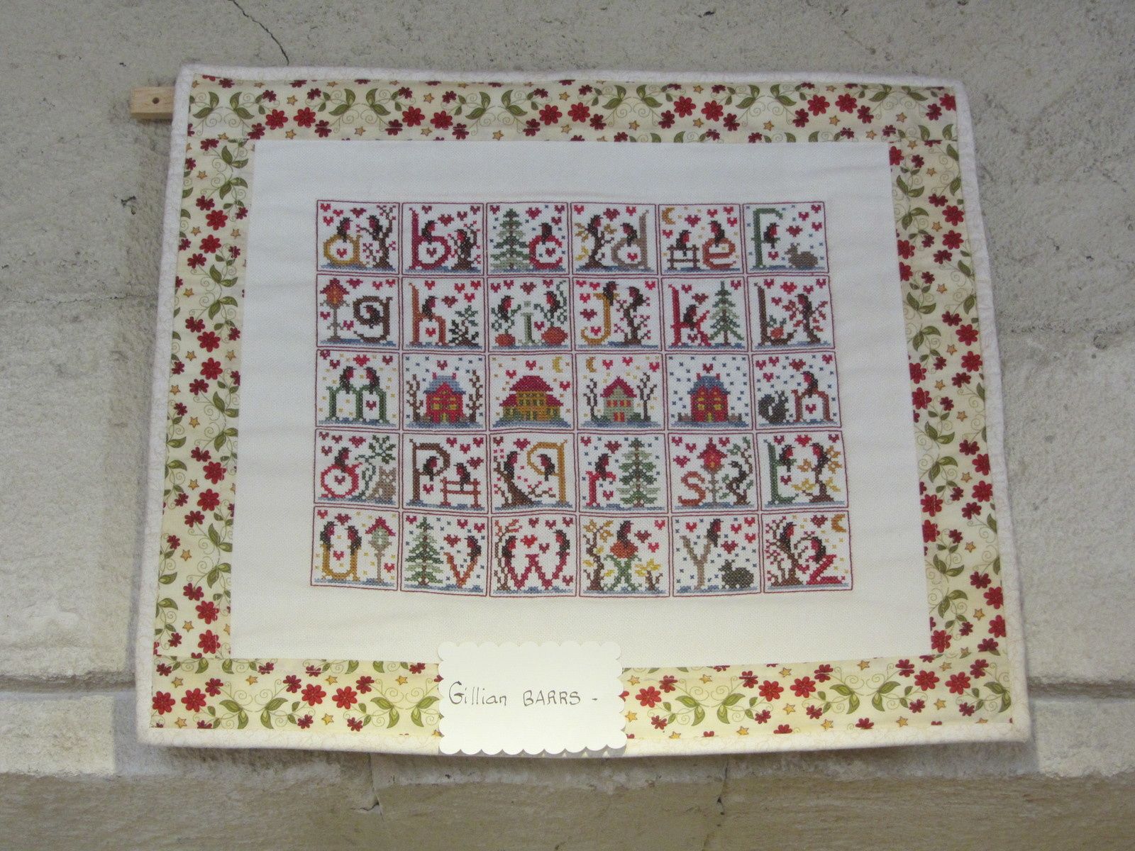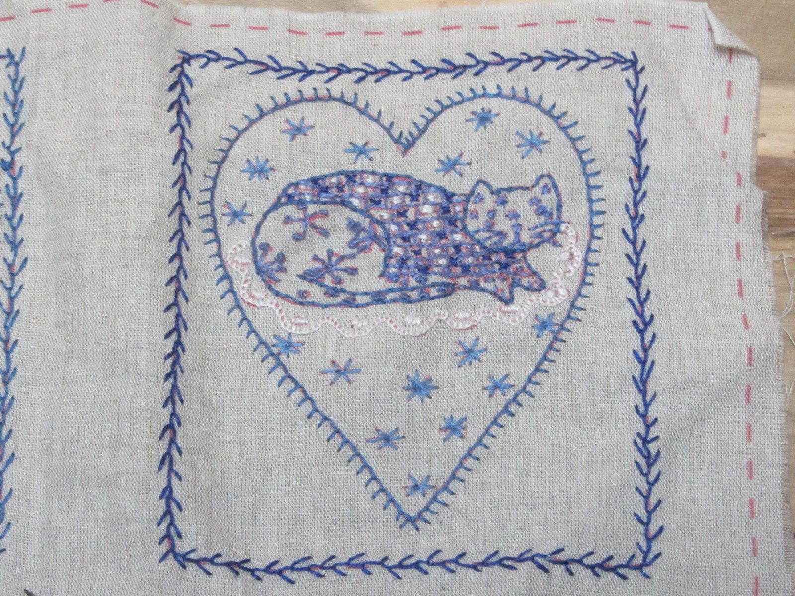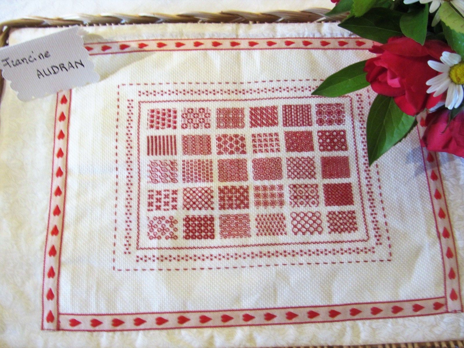 Et quelques points ... d'épine, d'arête, de tige, de bouclette, de nœud, de poste, de feuille ...plus tard, voici ma version . Un peu plus colorée, car je me suis appuyée sur les tons du tissu, pour sélectionner mes fils.