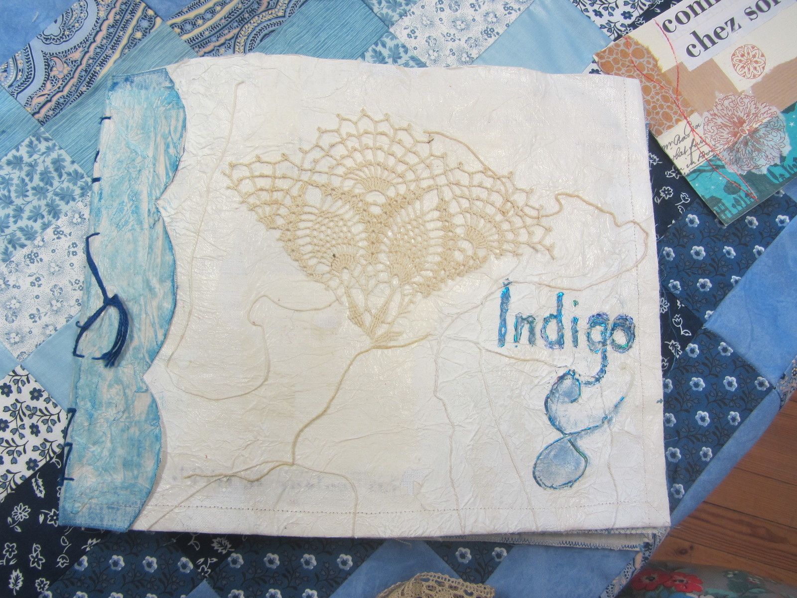 En dessous de l’écheveau, on aperçoit le modèle dont je me suis inspiré, tiré du livre de Féeféedille "Patchwork Embelli"