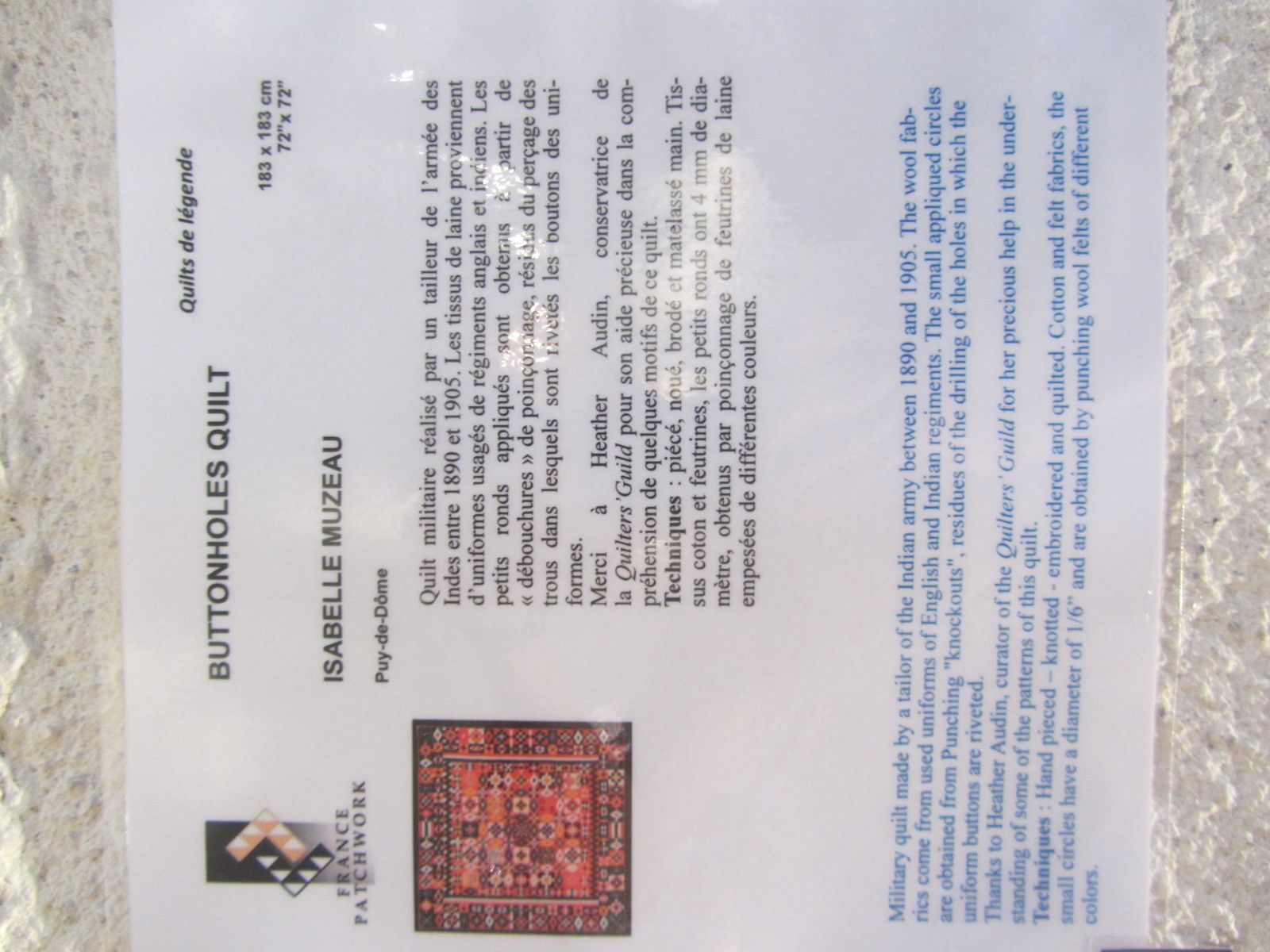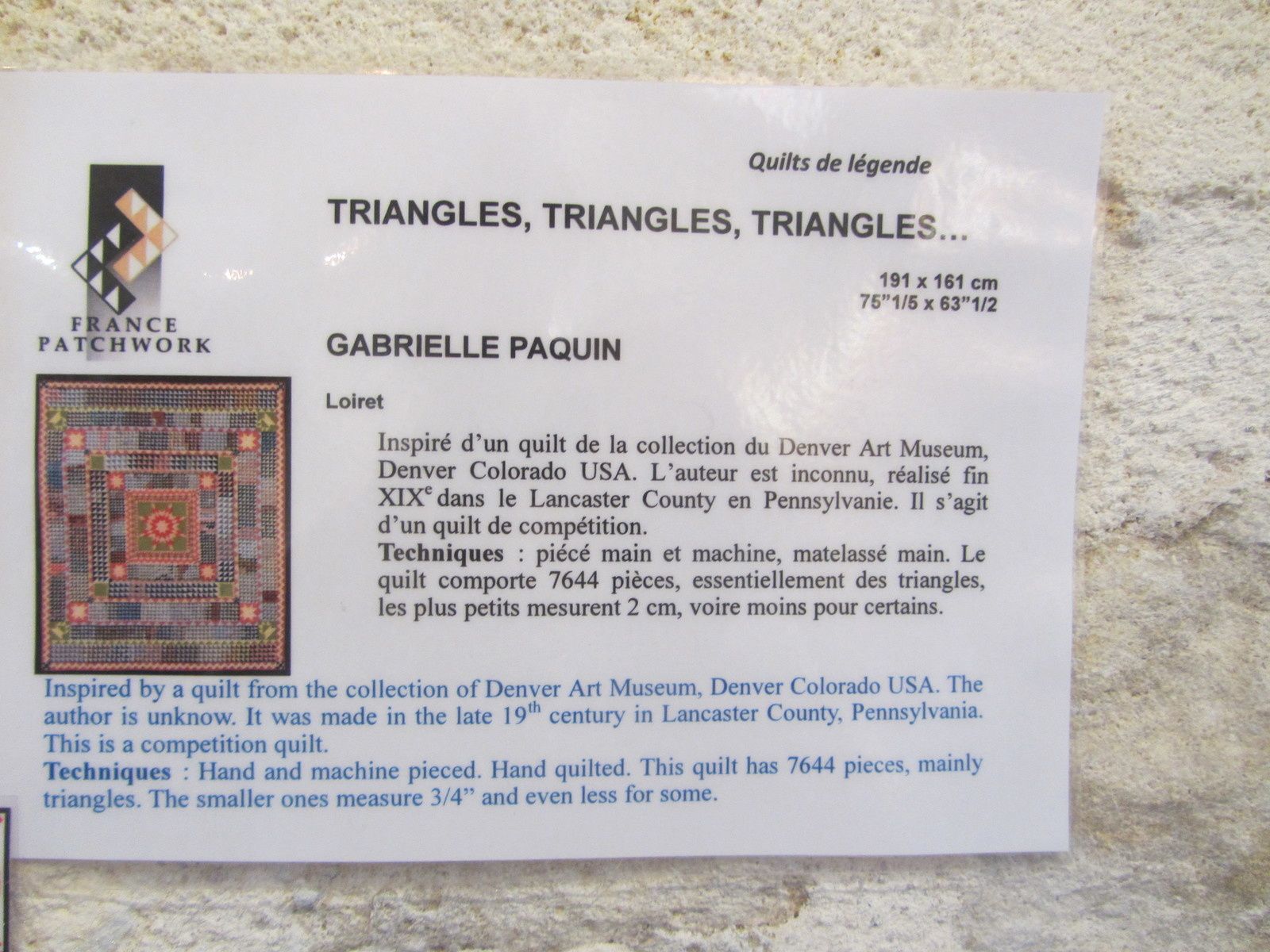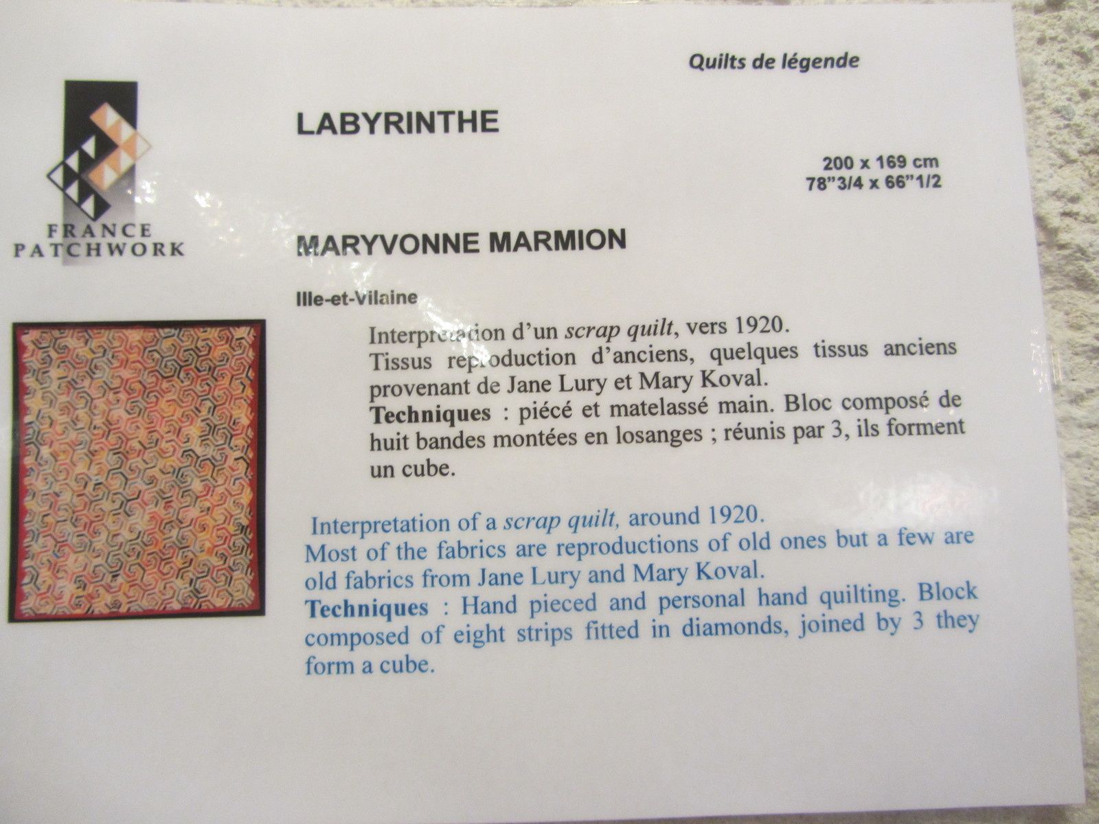 Voici la rétrospective des 20 années d'exposition des quilts de légende de Brouage, qui s'est tenue en deux temps.