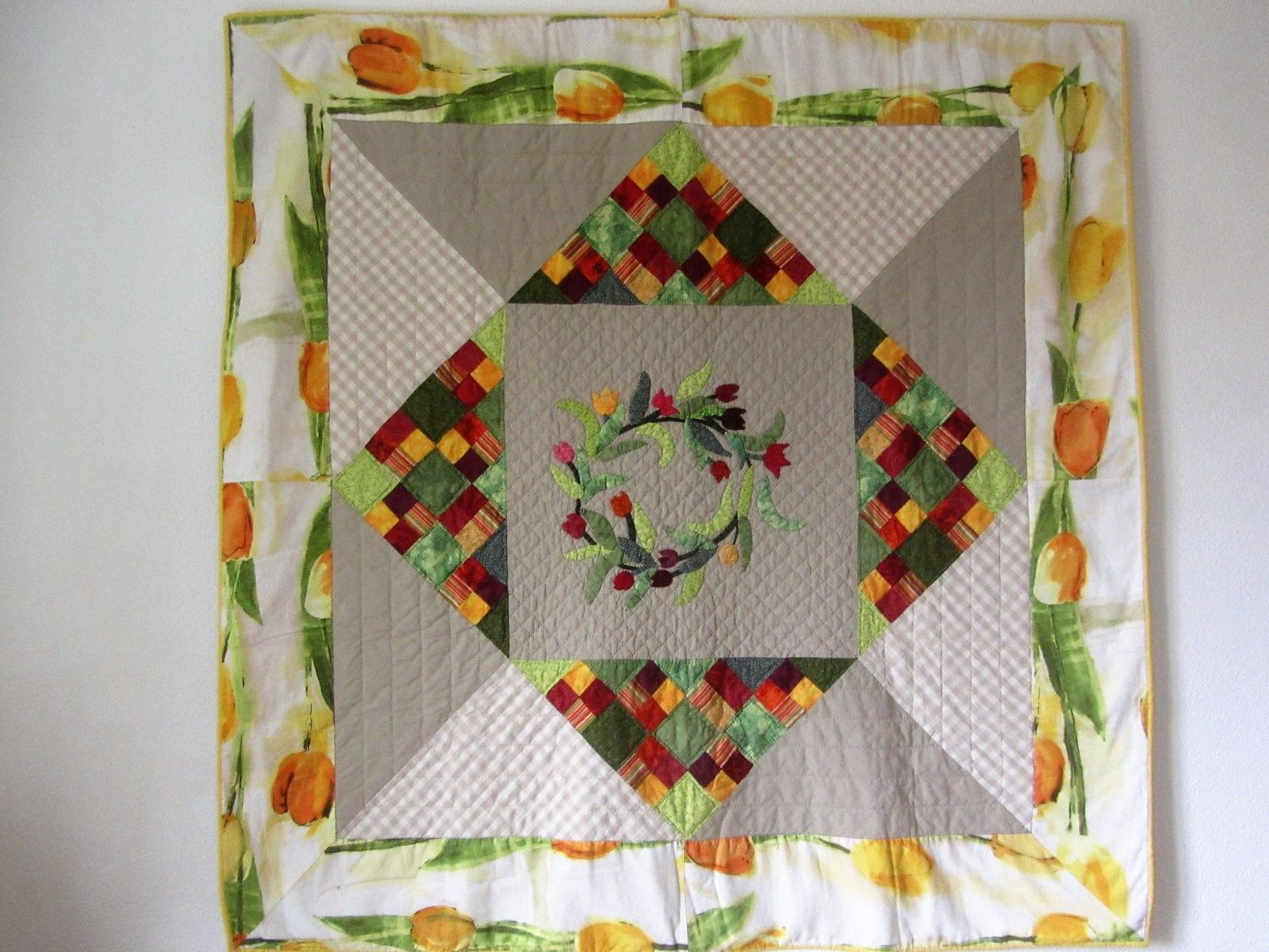 J'avais dans mes réserves de textiles anciens, cette taie d'oreiller monogrammée. Elle portait des marques d'usures en son centre. J'y ai appliqué des morceaux de tissus, qui ont inspiré le cho...
