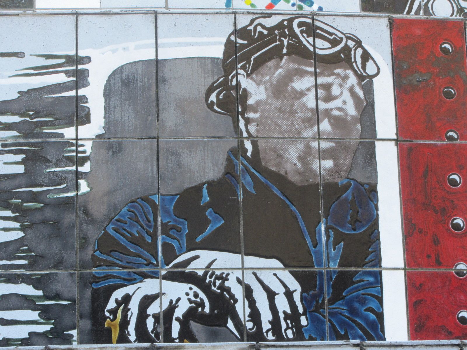 En dessous de la fresque , se trouve une mosaïque avec quelques rappels symboliques de films célébres. Vous souvenez vous de ce film en noir et blanc où une fusée atterit dans l'oeil de la lune?